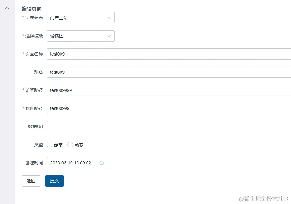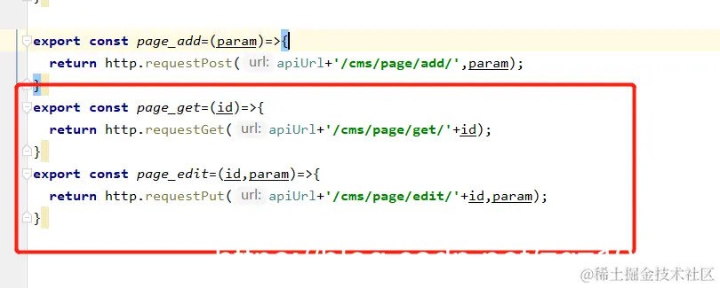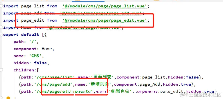 页面修改得前端代码,因为大部分得页面模板都一样,所以这个时候直接复制前一个模板就可以了,首先得思路和后端得思路一样需要将页面中需要编辑得信息,回显到页面中,然后在执行保存得按钮,在修改前得得代码得时候,第一步先将页面复制进来,之后,在index.js中添加路由,定义字节点,之后在cmsApi中定义请求根据ID查询得方法和edit保存 得ajax请求,这个路由相关得就定义完了,有个比较重要得地方,就是根据ID查询数据回显得时候,需要传入这条记录得ID值,所以在定义路由得时候要把ID这个变量跟到后面,这样在LIST这个页面用路由得方法得时候,可以直接在后面拼ID,就很方便得查询回显得数据了