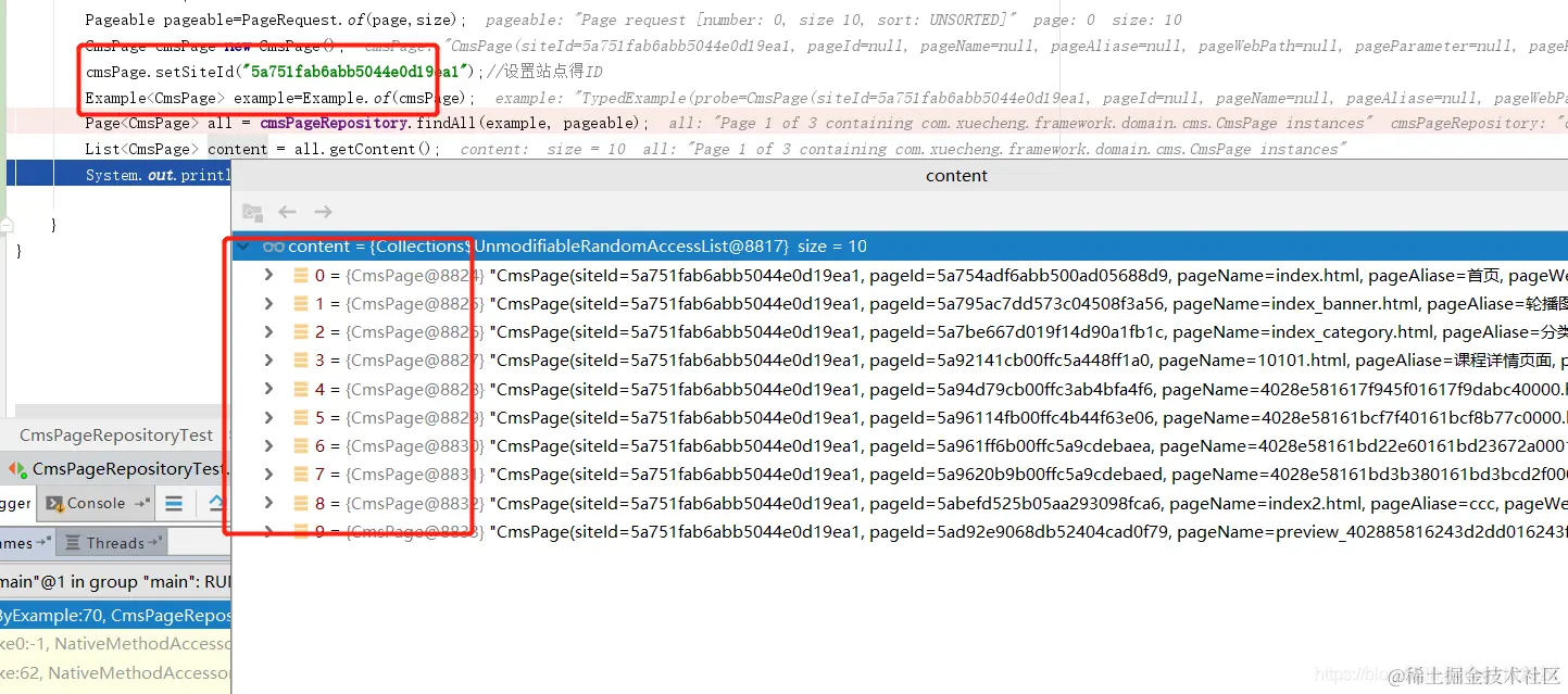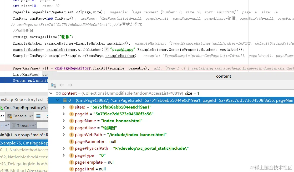 Page all = cmsPageRepository.findAll(example, pageRequest);