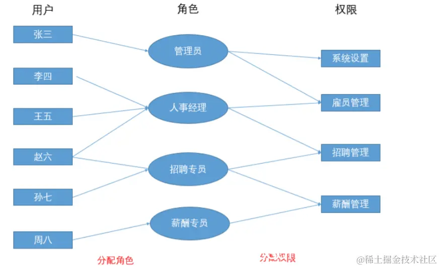 在RBAC模型中,角色是系统根据管理中相对稳定的职权和责任来划分,每种角色可以完成一定的职能。用户通过 饰演不同的角色获得角色所拥有的权限,一旦某个用户成为某角色的成员,则此用户可以完成该角色所具有的职 能。通过将权限指定给角色而不是用户,在权限分派上提供了极大的灵活性和极细的权限指定粒度。