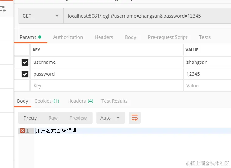 return "用户名或密码错误";