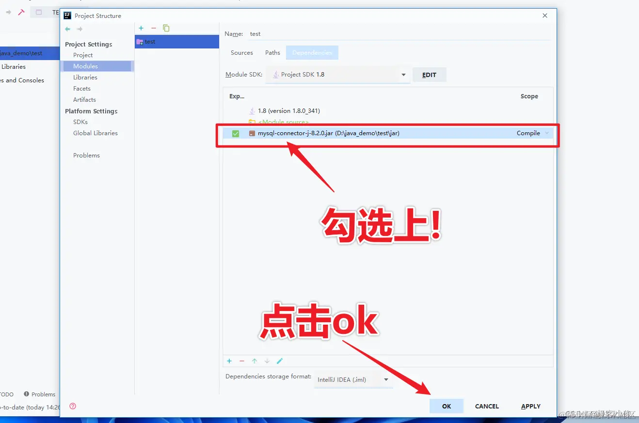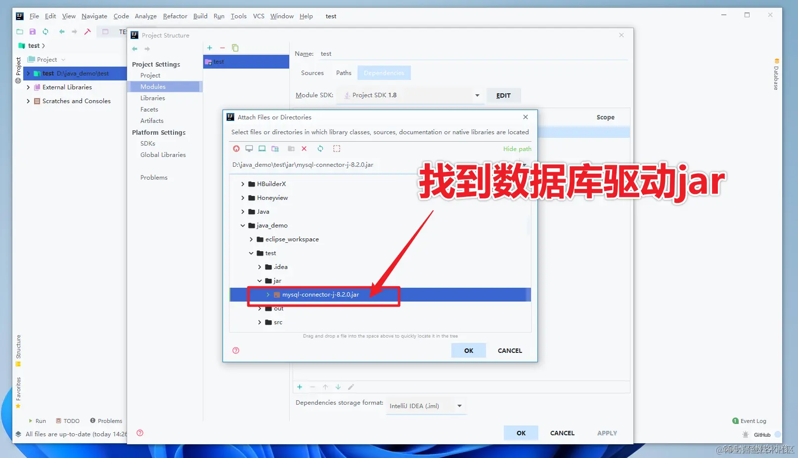 然后选择之前我们放置mysql-connector-j-8.2.0.jar的路径, 点击ok导入即可!