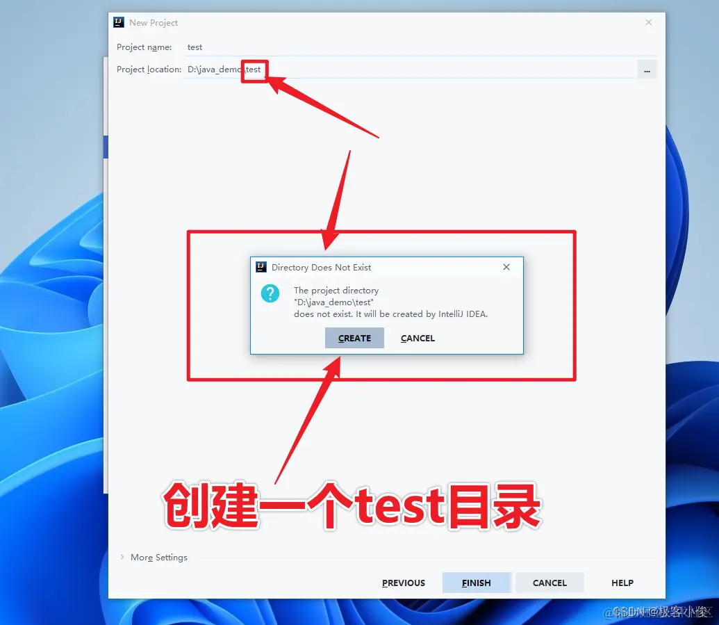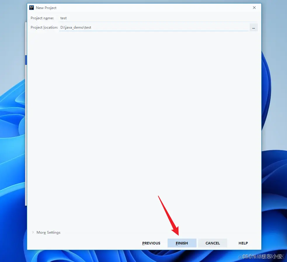 注意: 这里Project location如果为好更好的区别多个项目,建议再加一个和项目同名的目录名称即可!