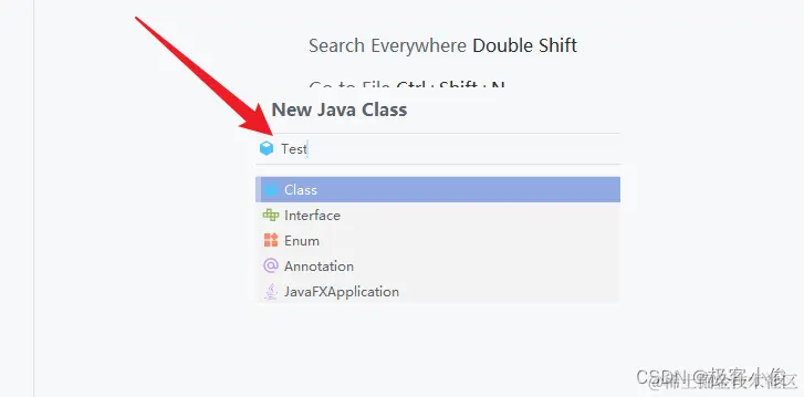 在Test类中 输入快捷命令psvm后回车 或者按Tab键快速自动生成min函数结构体