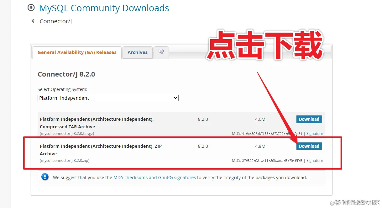 所以我们首先要去官方下载这个mysql-connector-j-8.1.0.jar文件
