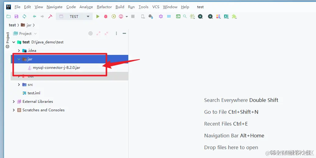 我们将得到的mysql-connector-j-8.2.0.jar文件放到我们的intellij idea项目目录下来,方便管理