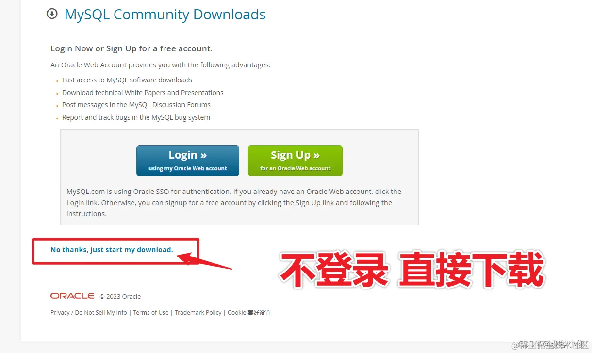 如果弹出提示登录,直接点击No thanks, just start my download(直接下载)