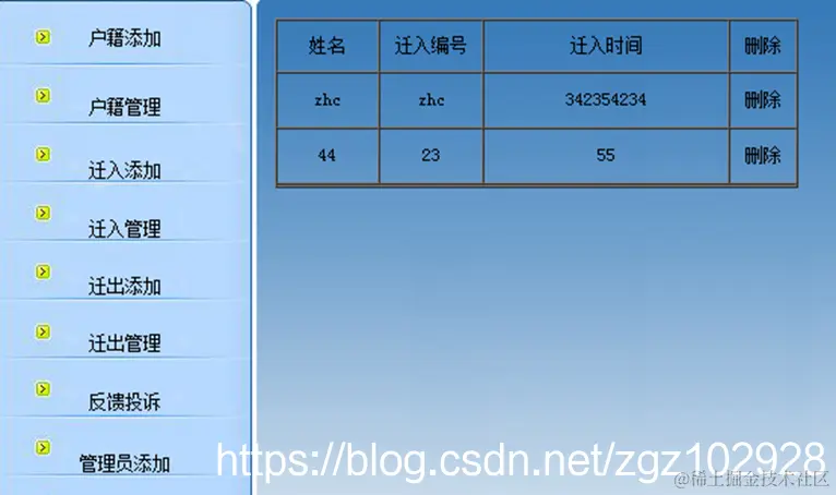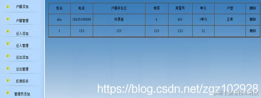 迁入管理:查询和删除新迁入的户主信息