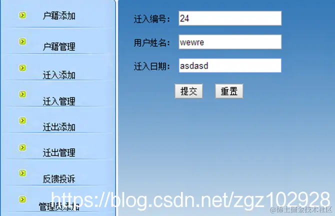 §迁入查询:查询自己的迁入信息