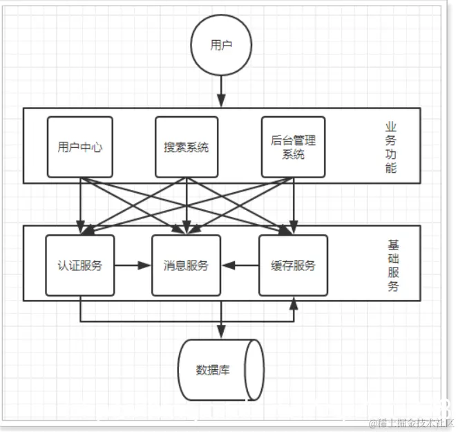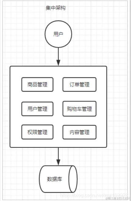 当访问量逐渐增大,单一应用无法满足需求,此时为了应对更高的并发和业务需求,我们根据业务功能对系统进行拆分: