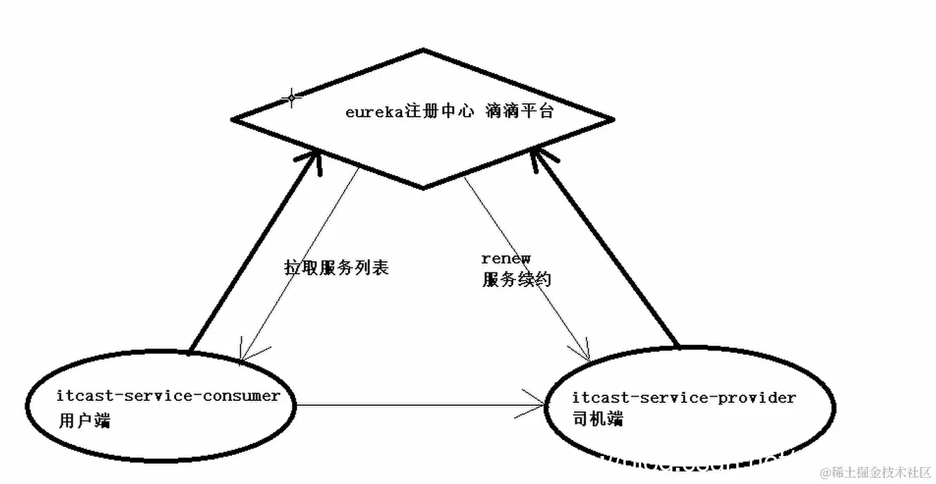 消费应用从注册中心获取服务列表,从而得知每个服务方的信息,知道去哪里调用服务方。本例中就是我们实现的itcast-service-consumer。