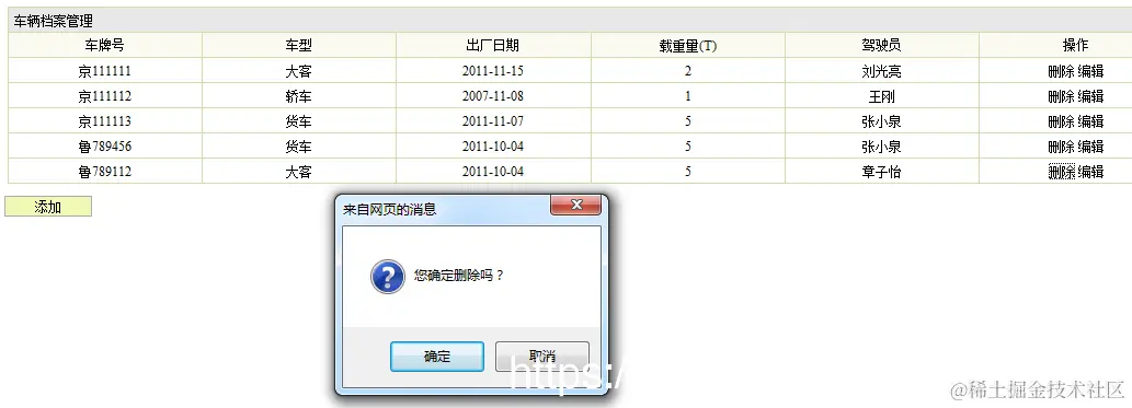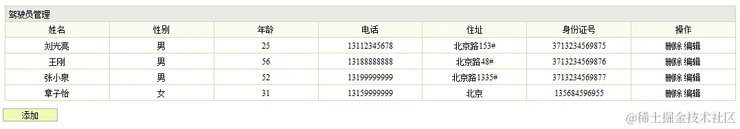 1.描述:先是点击驾驶员信息管理,页面跳转到驾驶员信息管理界面,浏览所有的驾驶员信息,点击要删除的驾驶员信息,点击确认按钮,完成驾驶员删除操作。