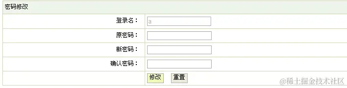述:输入用户名和用户的原有密码,输入新密码以后点击修改按钮即可修改密码成功。