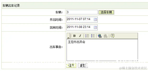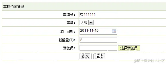 1.描述:管理员输入出车相关正确信息后点击录入按钮,如果是没有输入完整的出车信息,都会给出相应的错误提示,不能录入成功。输入数据都通过form表单中定义的方法οnsubmit="return checkForm()"来检查,checkForm()函数中是各种的校验输入数据的方式。