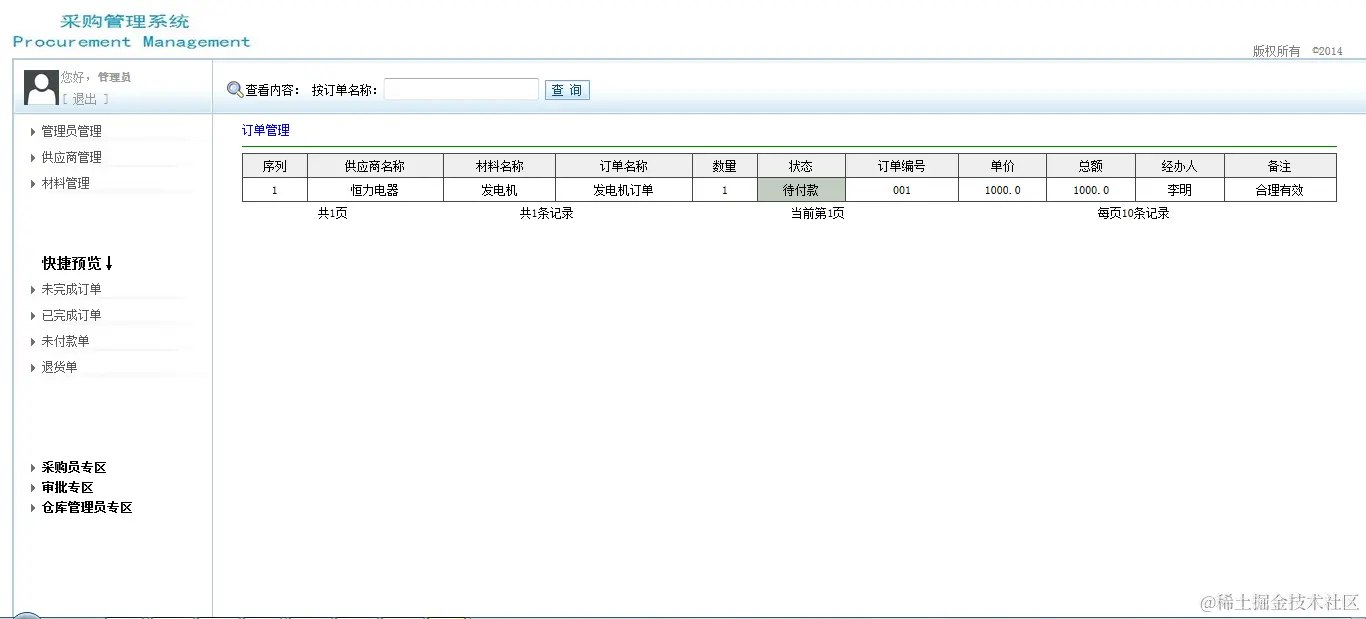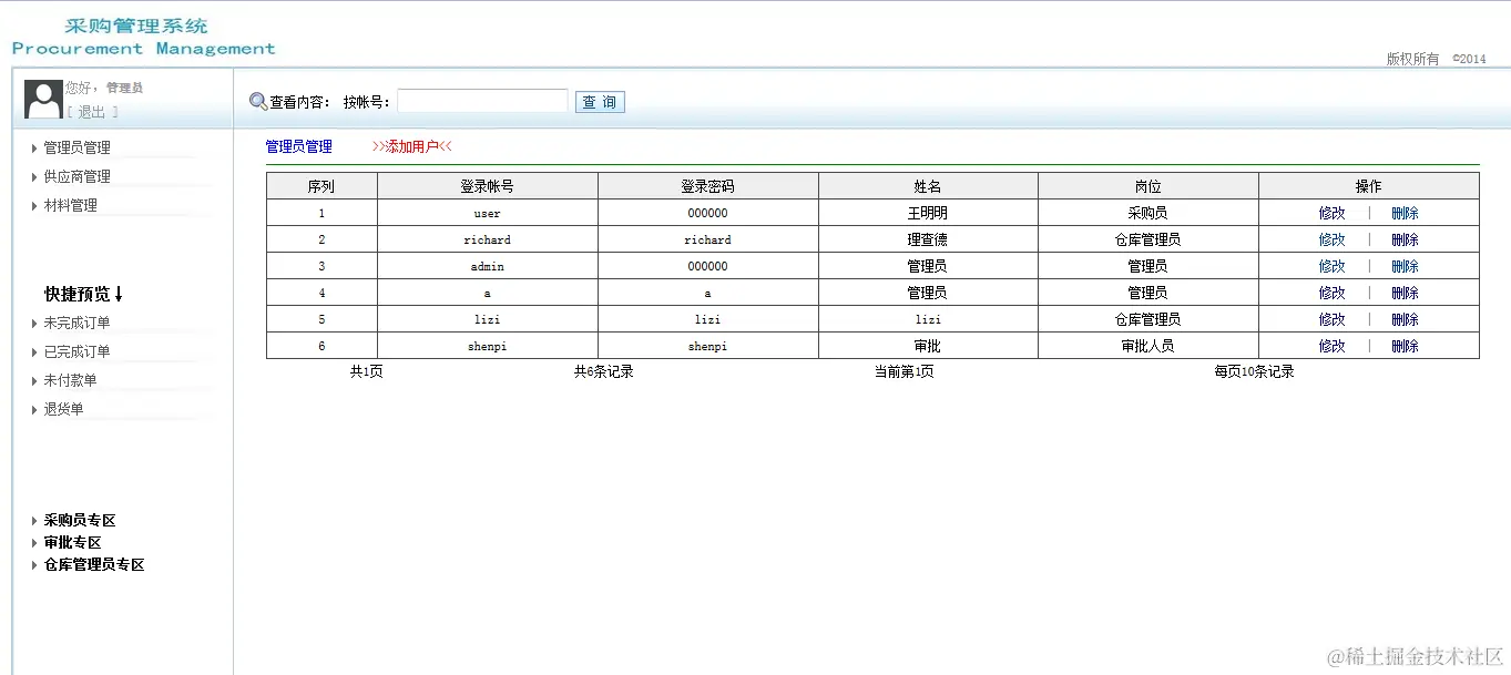 javaEE采购管理系统