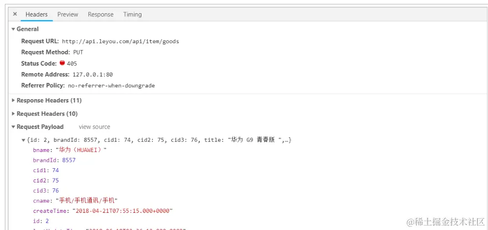 随便修改点数据,然后点击保存,可以看到浏览器已经发出请求: