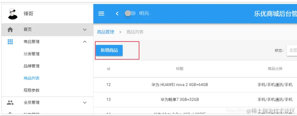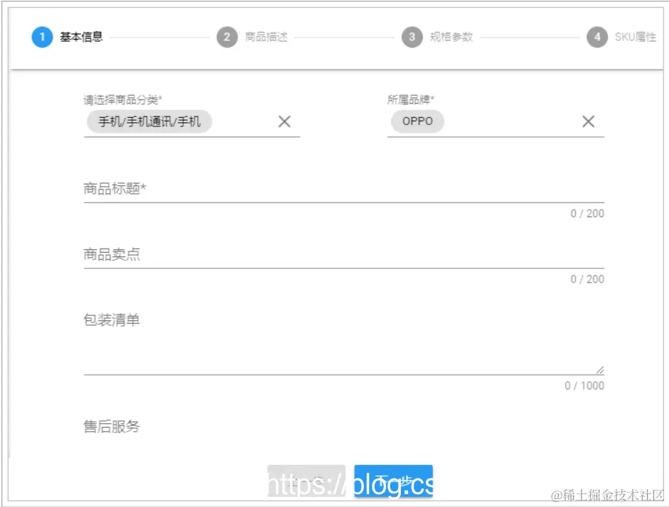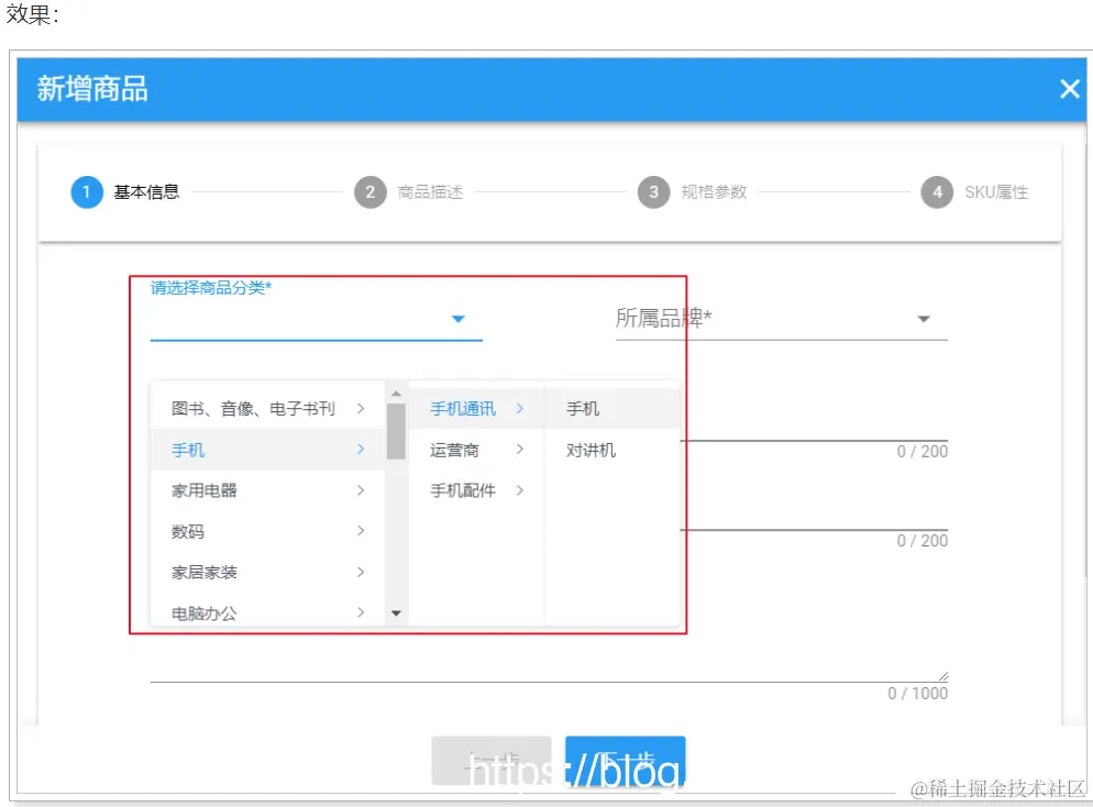商品分类信息查询我们之前已经做过,所以这里的级联选框已经实现完成: