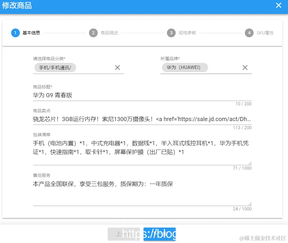基本信息:主要是一些简单的文本数据,包含了SPU和SpuDetail的部分数据,如