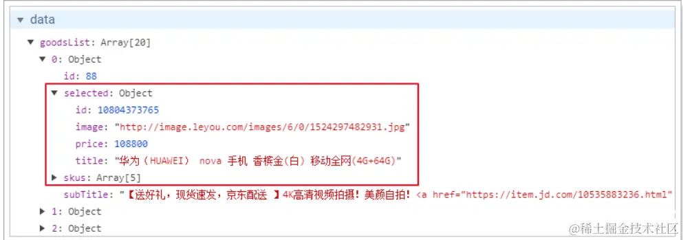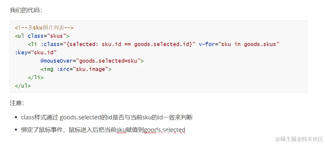 - 记录当前被选中的是哪一个sku,记录在哪里比较合适呢?显然是遍历到的goods对象自己内部,因为每一个goods都会有自己的sku信息。