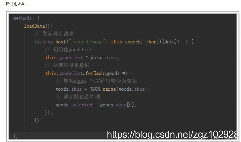 - 在搜索到数据时,先默认把第一个sku作为被选中的,记录下来