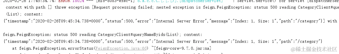 这个远程调用的异常经成出现:问题还是出现在根据分类查询的时候参数的个数不匹配