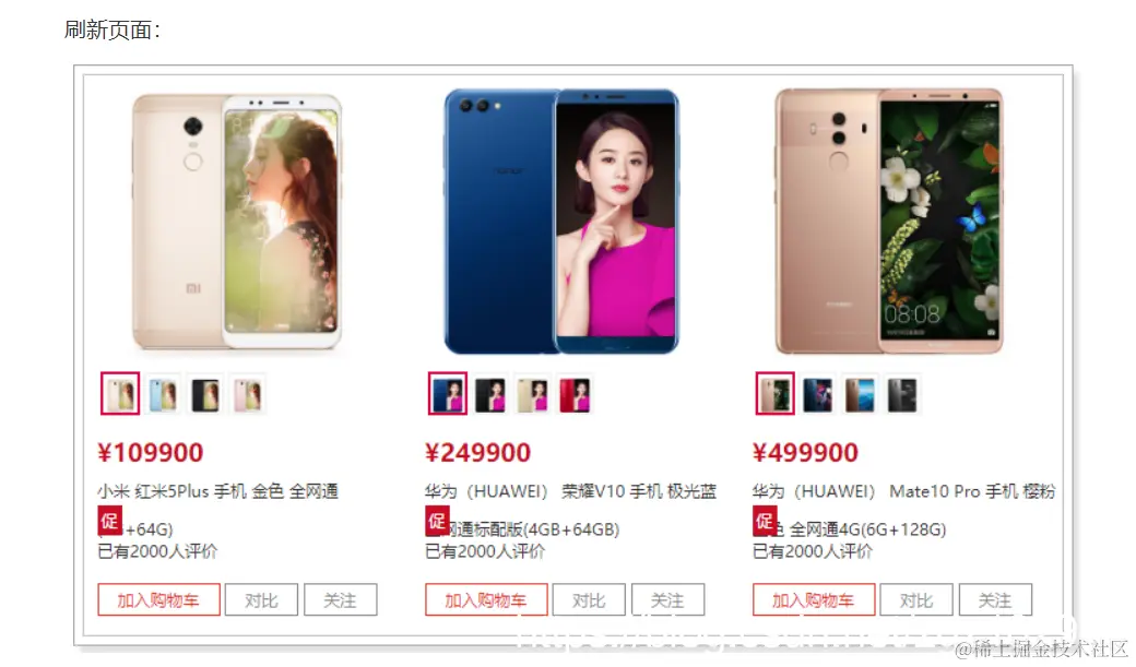 这里我们可以发现,一个商品位置,是多个sku的信息集合。当用户鼠标选择某个sku,对应的图片、价格、标题会随之改变!