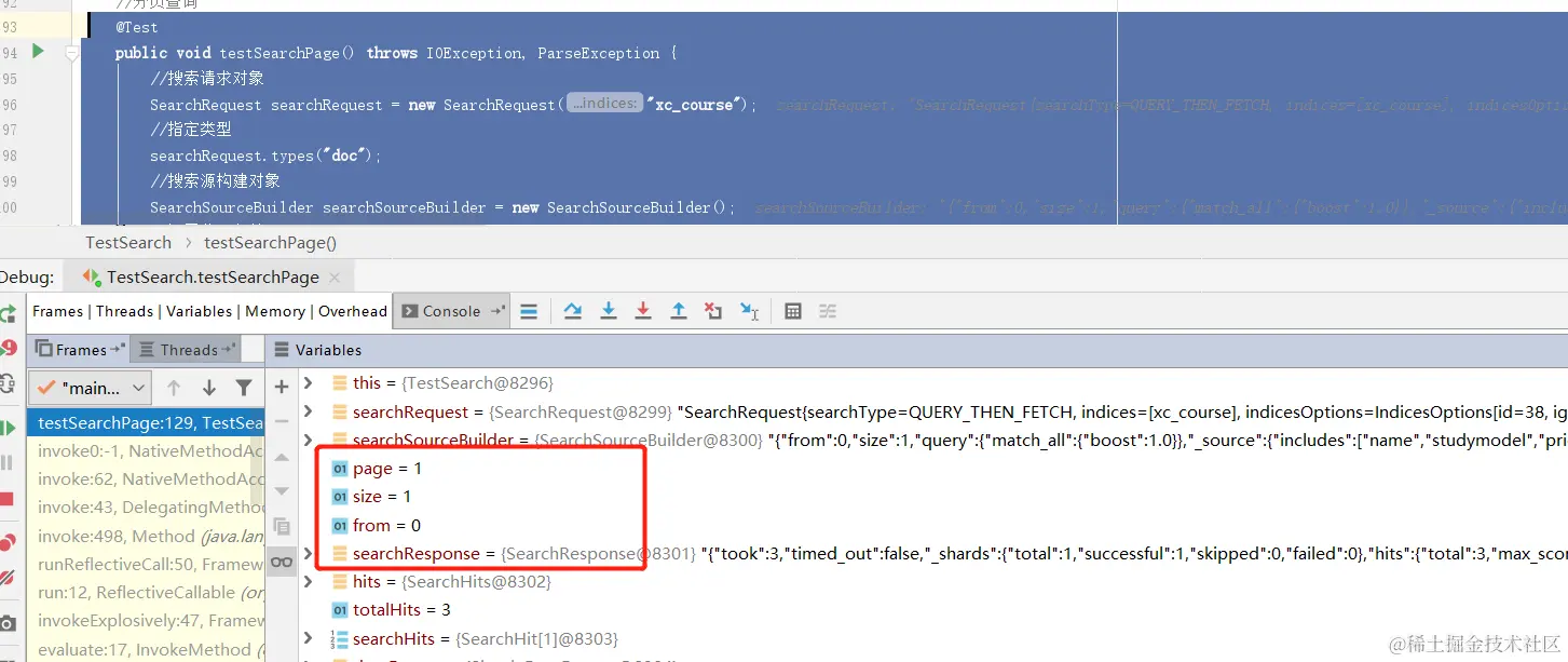 searchSourceBuilder.from(from);//起始记录下标,从0开始