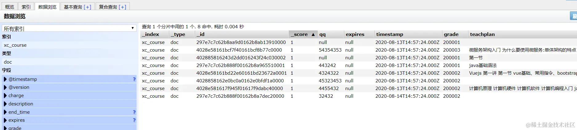 "studymodel" : {"type" : "keyword" },