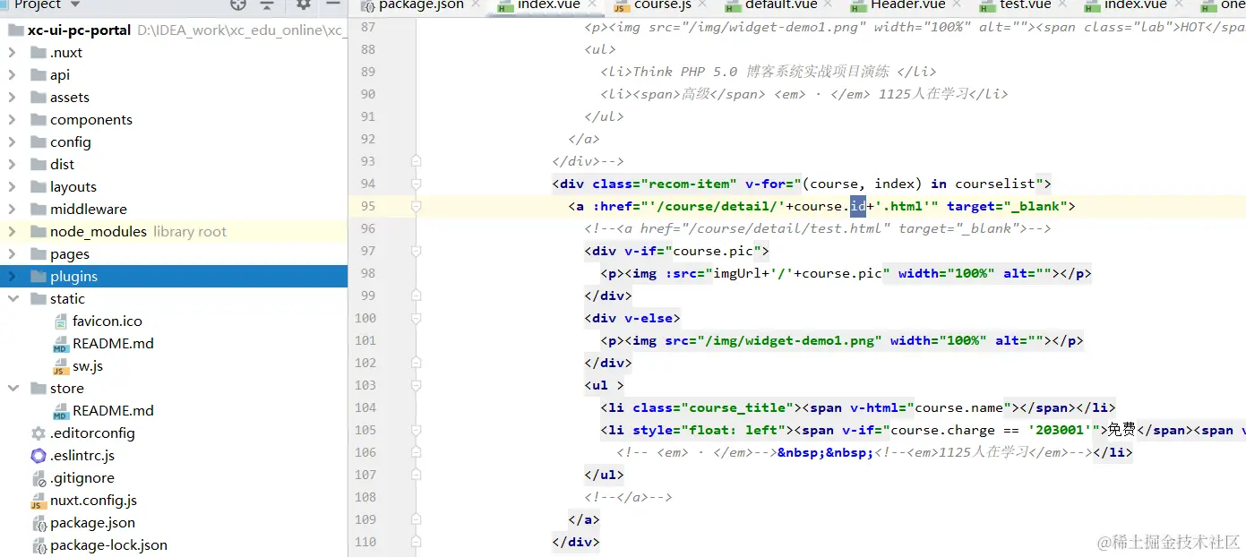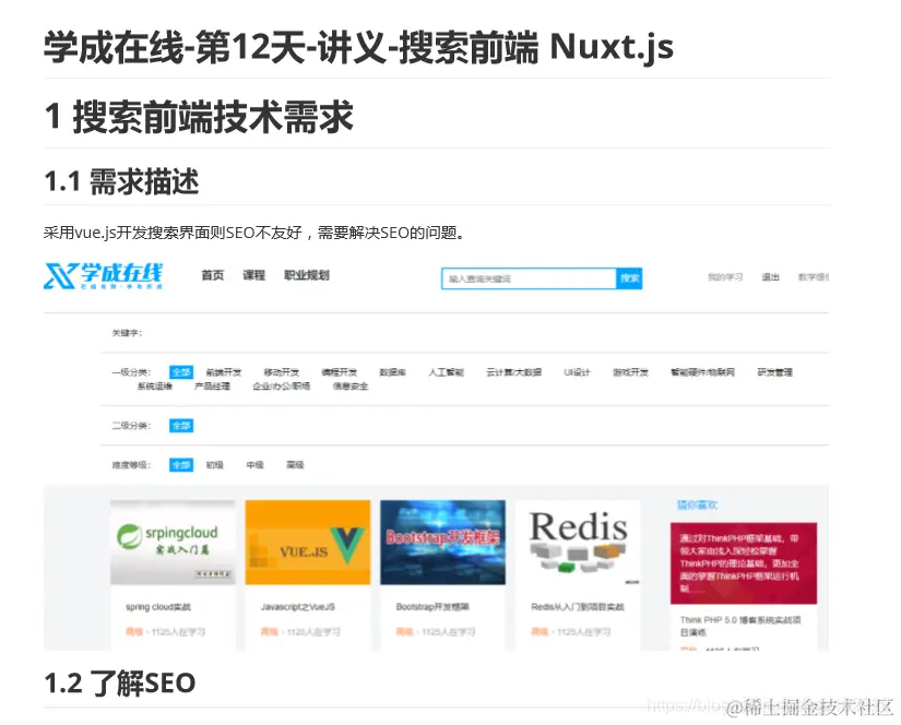 学成在线--day12 搜索前端 Nuxt.js-CSDN博客 E网情深 2023-11-27 73 阅读1分钟 、 导入工程 创建测试案例 配置Nginx后启动成功 将后台所有微服务启动起来之后进行测试 配置前端代码,运行测试 服务端分页 设置搜索高亮 查看课程详情 全程复制代码,做的这里实在时做不下去了,感觉这个项目真的时很恶心,完全没有听下去的动力,将的搜索也是含糊不清,主要的知识点都在复制,就是把流程走通就可以了!!