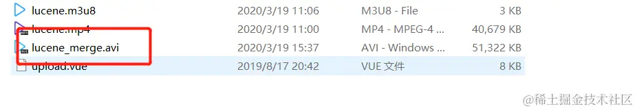 File mergeFile = new File("D:\\video\\lucene_merge.avi");