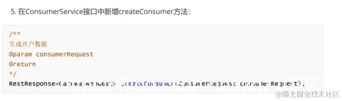 1. 在wanxinp2p-api工程中的ConsumerAPI接口中新增createConsumer方法: