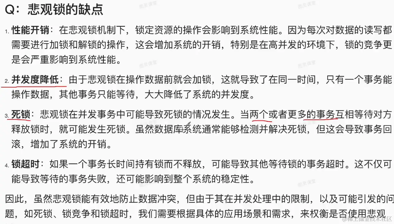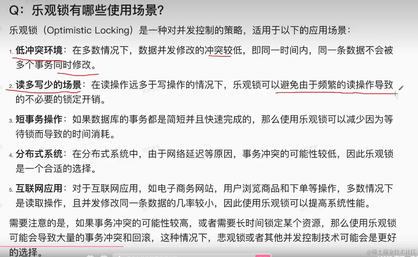 乐观锁:在mysql里面没有内置的锁实现,实现的方式通常就是通过版本号来实现的,就是说每当一条记录被修改是就修改版本号。然后在跟新的时候查看版本号有没有被修改。已经被修改的话就是。优点就是在并发少的时候,不需要多大的事务回滚,效率高,但是缺点就是说,并发高的时候大量回滚影响性能。