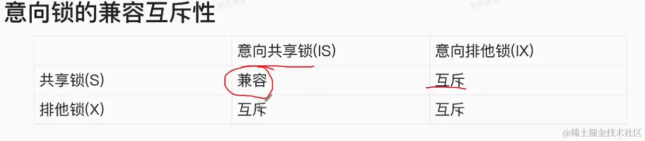 简单记住就是表的共享锁(读锁)和意向共享锁(读锁)可以互相兼容。