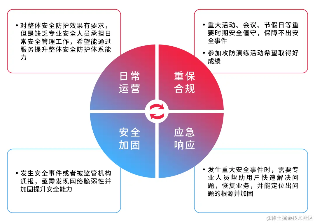 随着网络攻-防对抗形势愈演愈烈,传统的安全防护模式已难以应对频率暴增、昼夜不停的网络安全攻-击,提升组织安全防护能力势在必行。事实上,一些单位在网络安全建设工作中经验不足,在安全组件/设备采购方面大量投入,部署后却缺乏专人运营。这导致在安全事件发生时,组织不能及时发现并进行动态防护,安全效果难以达到预期。