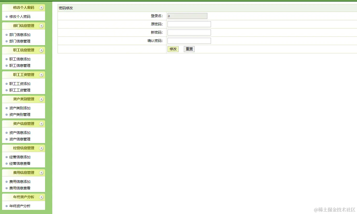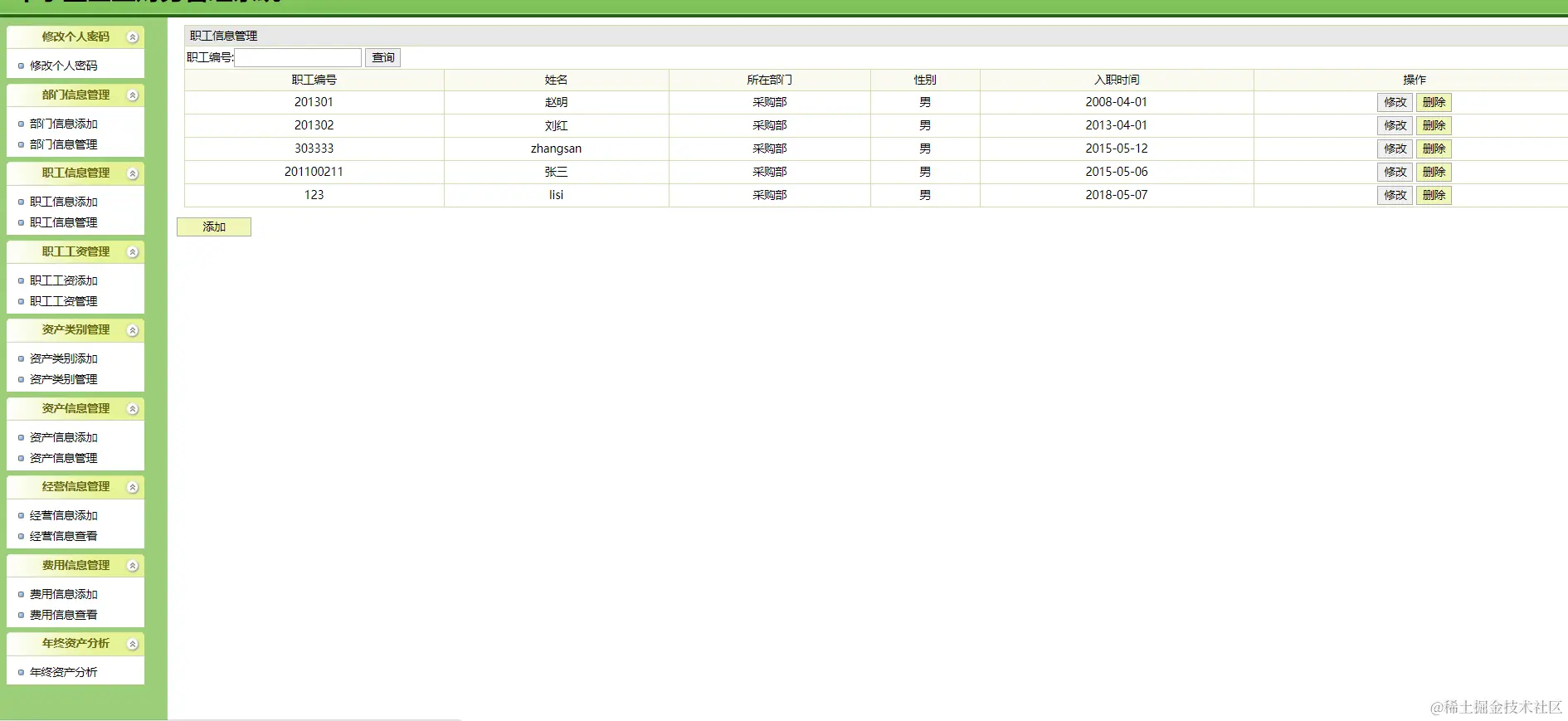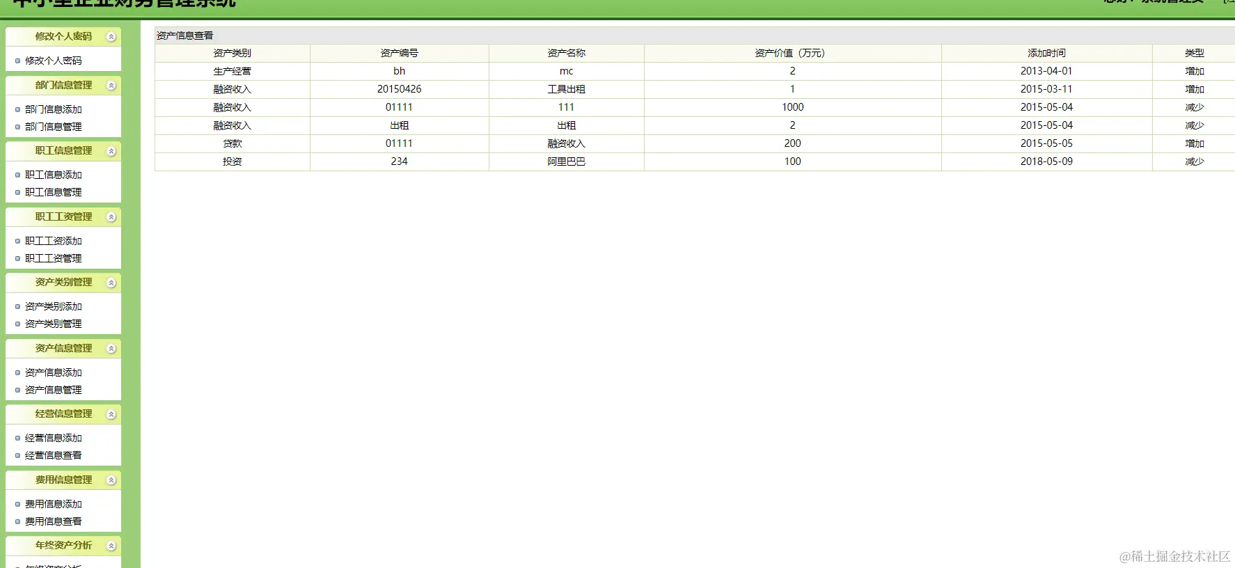 资产信息管理模块:实现资产信息的增加、查看功能;