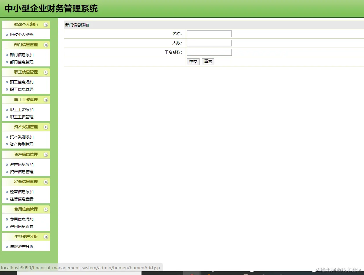 部门信息管理模块:实现部门的增加、修改、删除、查看功能;