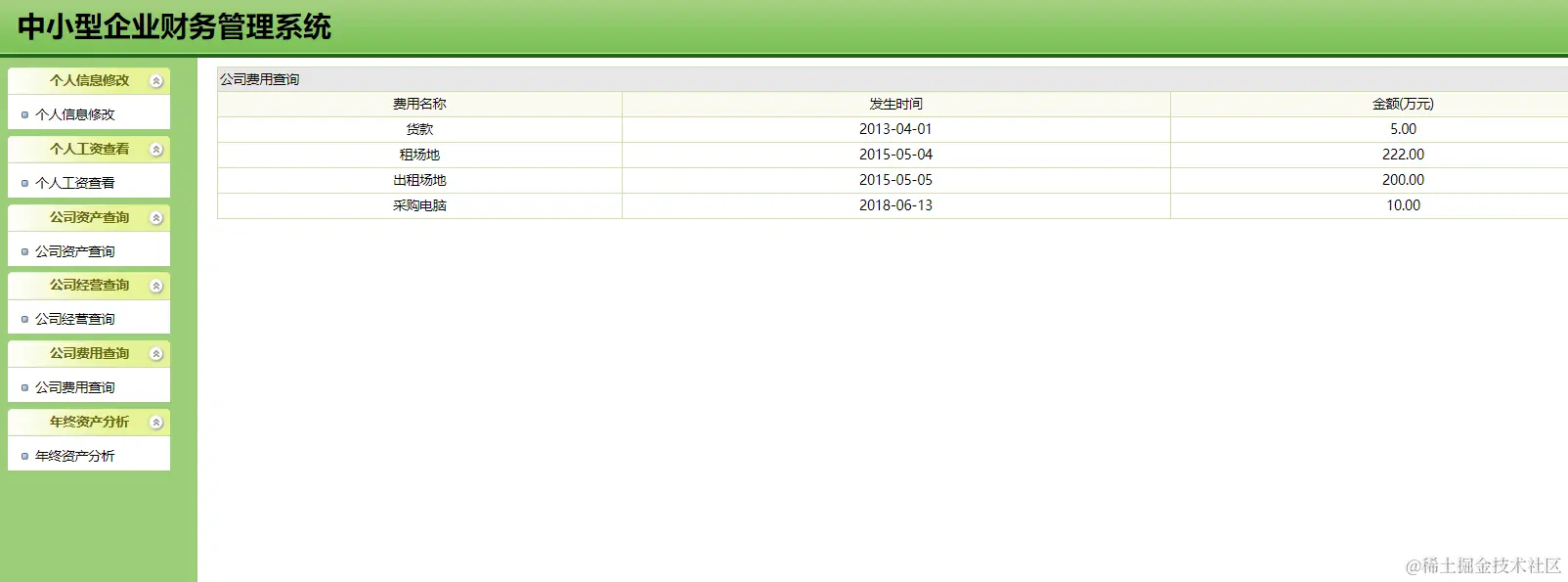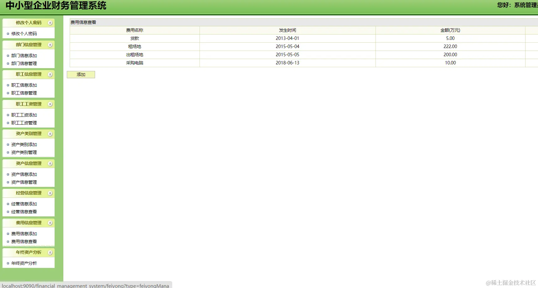 费用信息管理模块:实现费用信息的增加、查看功能;