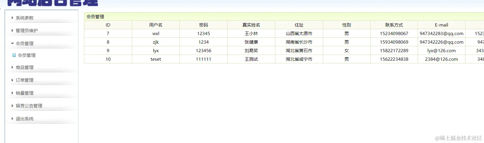 会员管理功能:查询所有会员,删除会员