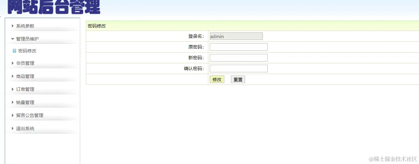 修改登录密码功能:修改管理员的登录密码
