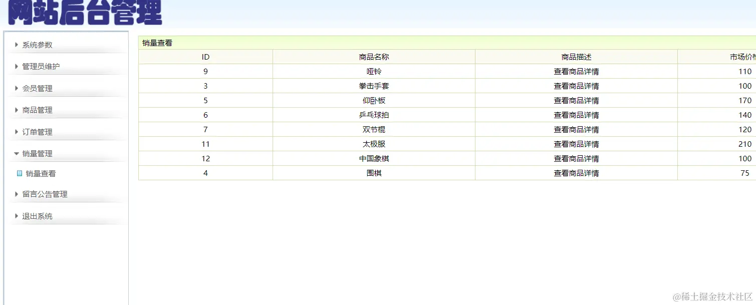 销量管理:查看所有商品的销量
