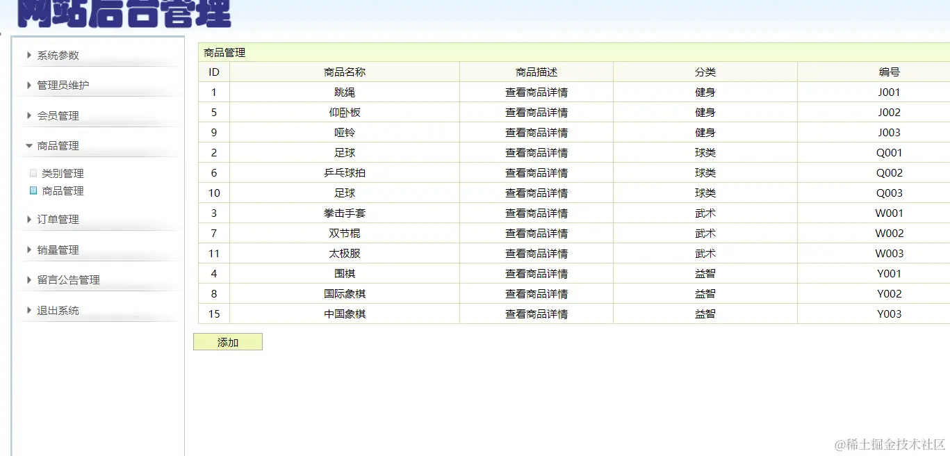 商品管理:查询所有商品,添加、删除商品