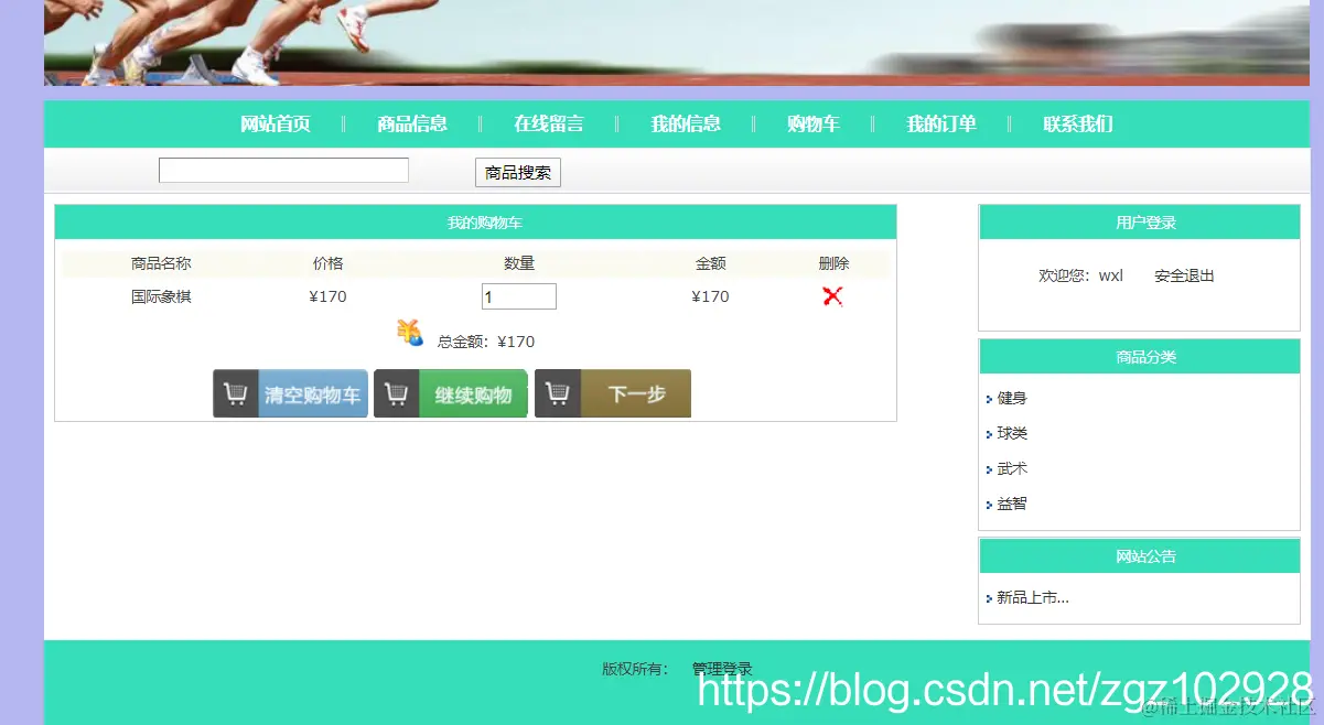 网上体育商城的主要功能包括:前台用户登录退出、注册、在线购物、修改个人信息、后台商品管理等等。本系统结构如下: