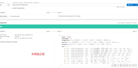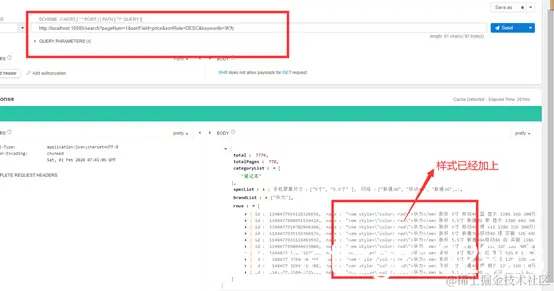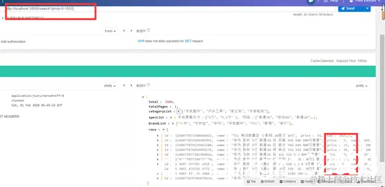 排序之后:请求地址:进行降序排序http://localhost:18085/search?pageNum=1&sortField=price&sortRule=DESC