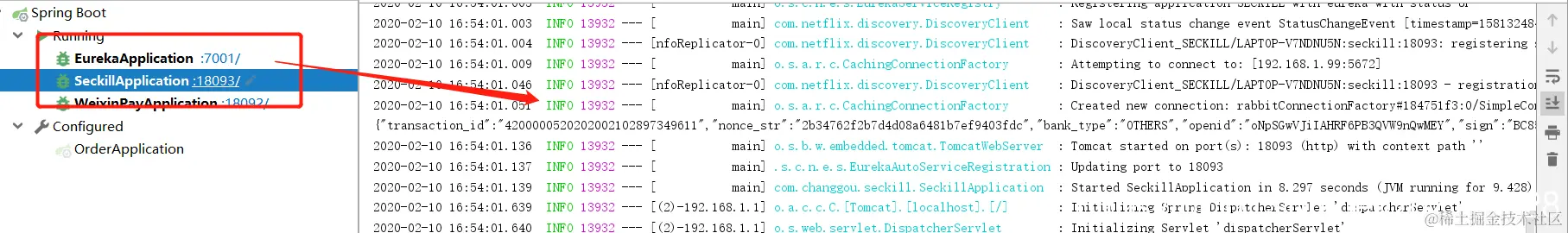 支付微服务这个秒杀队列和之前得一样,只要加上Seckill区分一下就可以了,没什么区别