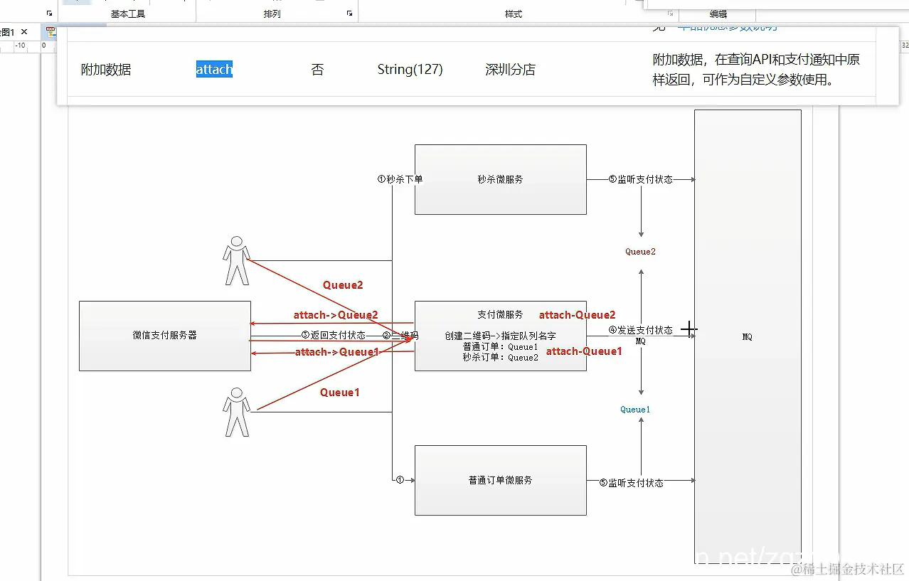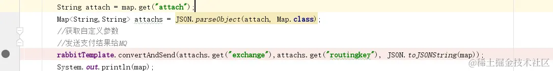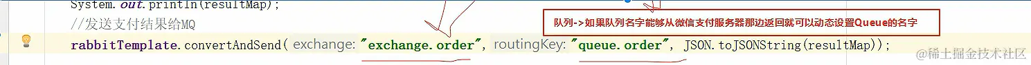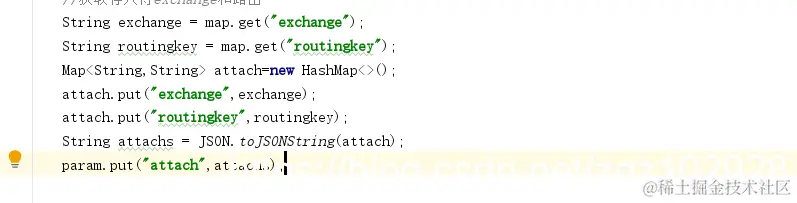 接下来就是要封装信息到微信得接口参数里面,attach,直接在生成二维码得时候,传入得map,参数里面获取,然后在获取得参数里面在封装到微信得接口参数里面,在发送监听队列得,时候从微信响应得接口参数attch里面获取对应得队列名称