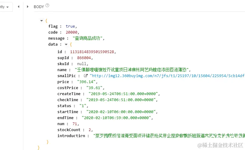 之后在查询某个具体的商品,查看库存和信息量以及具体的ID
