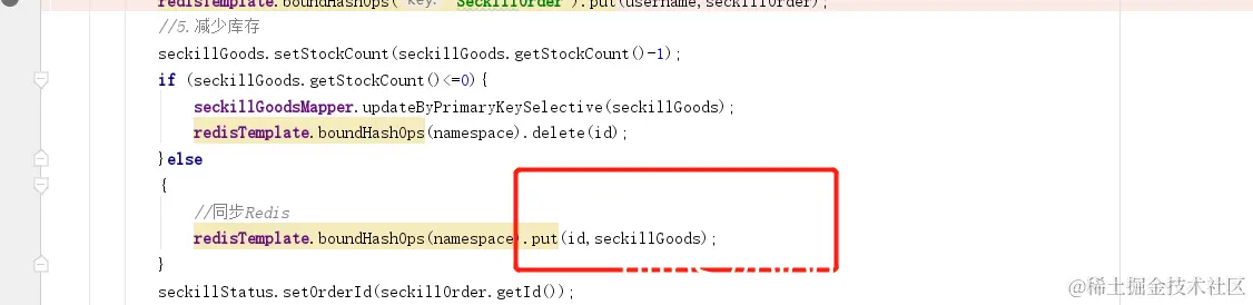 redisTemplate.boundHashOps(namespace).put(username,seckillGoods);