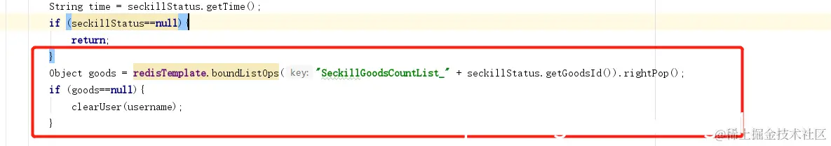 SeckillStatus userQueueStatus = (SeckillStatus) redisTemplate.boundHashOps("UserQueueStatus").get(username);