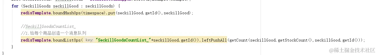 redisTemplate.boundListOps("SeckillGoodsCountList_" + userQueueStatus.getGoodsId()).leftPush(seckillGoods.getId());