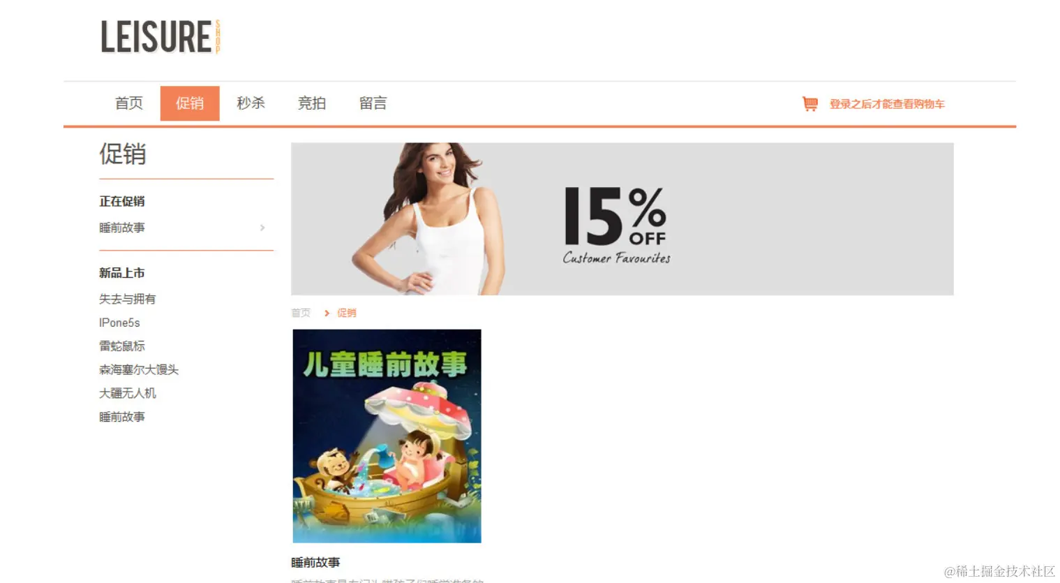 (1)普通用户登录/注册。 (2)分类查看商品(普通商品与促销商品)