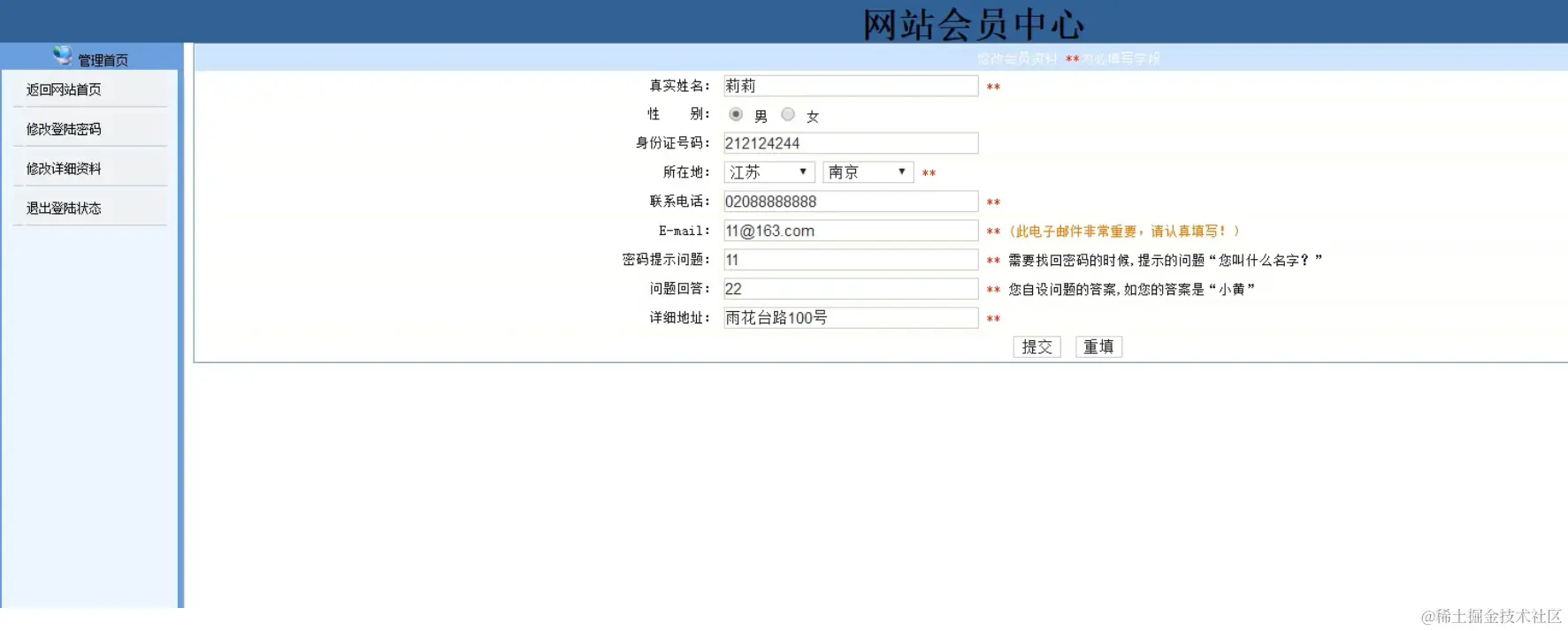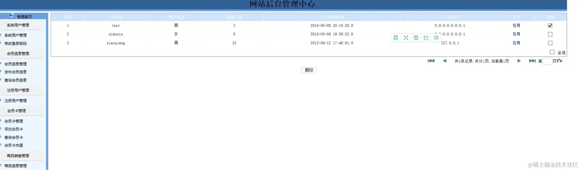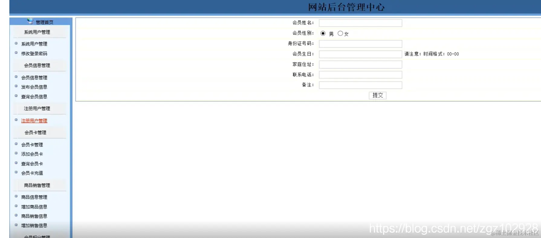 注册用户管理模块:实现注册用户的增加、修改、查看功能